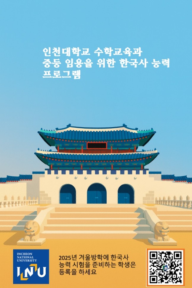 fnctId=bbs,fnctNo=1088 [학사] 인천대학교 수학교육과 중등 임용을 위한 한국사 능력 프로그램 글번호 415873 작성일 2025-12-03 수정일 2025-12-03 작성자 수학교육과 (032-835-8824) 조회수 95 첨부파일 첨부파일이(가) 없습니다. 다음글 [학사] 핀테크 금융 학습인원 모집 박현아 2025-12-03 12:18:20.0 이전글 수학 교육 영상 미디어 제작 박현아 2025-12-03 12:12:38.0 목록